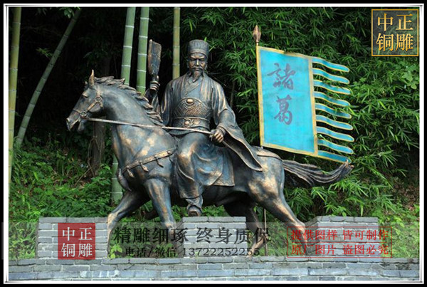 說道諸葛亮我們總是想到鞠躬盡碎死而后已,在中國人的心目中,這句話是諸葛亮的代名詞,也是后人對諸葛亮人生的高度概括與總結,是諸葛亮的精神所在,是值得我們學習的優秀品質,下面我們就欣賞一組由中正銅雕廠家制作的廣場古代人物雕塑諸葛亮。